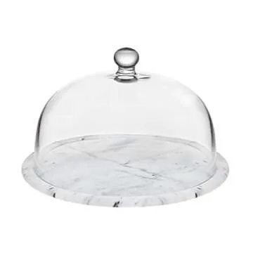 Godinger La Cucina Marble Plate with Glass Dome, 12.00L x 12.00W x 5.00H, Off-white