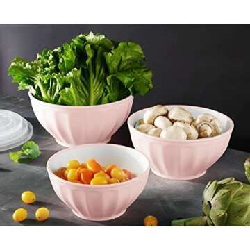 Godinger Mixing Bowls with Lids, Plastic Nesting Bowls Set for Storage, Microwave Safe, 3 Bowls 3 Lids
