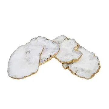 Godinger White Quartz Coasters Brass Edge, Set of 4