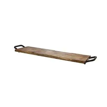 Show moreIntroducing the Godinger Wood Serving Tray, a masterpiece that effortlessly combines elegance and functionality. Measuring an impressive 25 inches long, this charcuterie platter is designed to enhance your culinary presentations. Crafted from high-quality wood, it boasts a rustic charm that adds a touch of classic old-world style to your kitchen, dining room, or living area. The tray's wooden surface provides an ideal base for serving pastries, cheeses, baguettes, fruits, and a variety of delectable hors d'oeuvres, making it the perfect accessory for hosting any gathering or intimate dinner. The stylish metal handles not only enhance the aesthetic appeal but also ensure a sturdy grip while serving, making it a practical choice for transporting your culinary creations with ease.