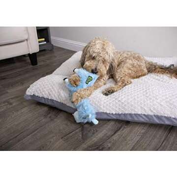 Meet the goDog Buck Tooth Llama Dog Toy, a delightful addition to your canine's playtime arsenal! These vibrant blue and tan plush toys are not just adorable with their silly faces and soft, long faux fur, but they're also designed to withstand the rough and tumble of play thanks to innovative Chew Guard Technology. Perfectly sized for large dogs, each pack contains two guaranteed fun companions that will quickly become your furry friend's favorite. The built-in squeaker will keep your dog engaged while the...