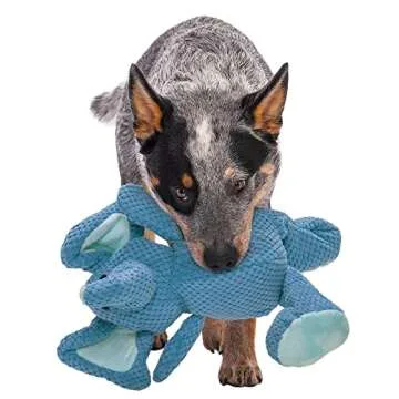 goDog Checkers Elephant Squeaky Plush Dog Toy, Chew Guard Technology - Blue, Large