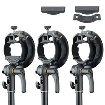 Constructed from durable materials, the bracket’s sturdy build guarantees longevity, and its lightweight design encourages portability. The addition of a Bowens Mount makes it compatible with various studio flash accessories, allowing you to experiment with softboxes, reflectors, snoots, and more. Additionally, it features convenient umbrella input holes, giving you flexibility in adjusting light direction with a simple handle movement.