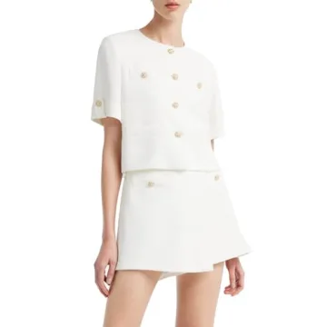 GOELIA Women's 2 Piece Suit Sets White Acetate Short Sleeve Blazer Jacket and Skirt Shorts Business Casual Outfits