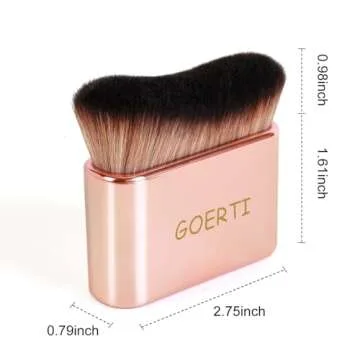 Show more This versatile body makeup brush redefines your beauty routine with its stunning design and unmatched functionality. Made from superfine soft and high-density synthetic bristles, it glides effortlessly over your skin, delivering a flawless finish every time. The brush features an elegant sparkling ABS rose gold handle, making it a beautiful addition to your makeup collection that you will love to show off.