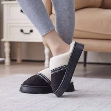 GOEWY Womens Slippers for Women Cozy Memory Foam House Slippers Winter Warm Comfy Furry Shoes for Indoor Outdoor Suede Platform with Anti-Skid Sole