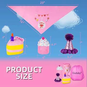 Celebrate your furry friend's special day in style with the Gofshy Dog Birthday Cake set! This delightful dog birthday party supply kit includes everything you need to make your pet's celebration memorable, featuring two squeaky dog toys, a vibrant birthday bandana, and a festive birthday hat. Crafted with quality in mind, this gift box is designed to provide endless fun for your dog while ensuring they look adorable on their big day. With its durability and charming design,...
