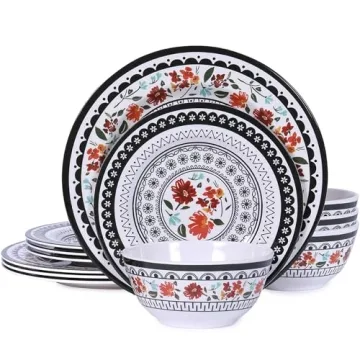 Show moreIntroducing the Gofunfun 12-Piece Melamine Dinnerware Set, designed for those who value style, durability, and convenience. This remarkable dinnerware set includes everything you need to set a beautiful table for four, featuring 10.75'' dinner plates, 8.5'' dessert plates, and 23oz bowls. Crafted from high-quality melamine, these dishes are not just easy on the eyes with their stunning retro black and white design; they're also incredibly practical. Enjoy the perfect blend of elegance and functionality with this unbreakable and shatterproof dinnerware, ideal for both everyday use and special occasions. Elevate your dining experience whether at home or outdoors!