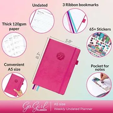 GoGirl Planner and Organizer for Women – A5 Size Weekly Planner, Goals Journal & Agenda to Improve Time Management, Productivity & Live Happier. Undated – Start Anytime, Lasts 1 Year – Hot Pink