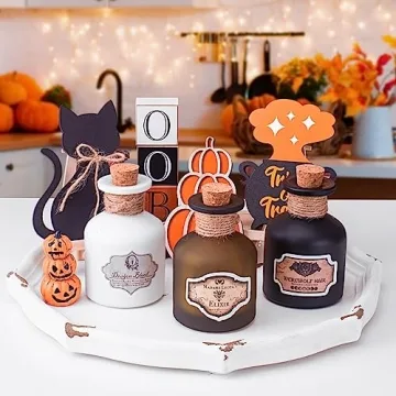 Show moreTransform your Halloween celebrations with the exquisite GOGREENWOVEN Halloween Decoration Set. This charming ensemble includes three reusable glass potion bottles, complete with corks and six vintage-style label stickers that evoke the magical essence of Halloween. Each potion bottle measures 4.33 inches tall and 2.75 inches wide, crafted from durable, thick matte glass, ensuring they stand out in your seasonal decor while maintaining a sturdy allure. The waterproof labels bring forth a spooky delight, making your decorations worry-free as you display them both indoors and outdoors.