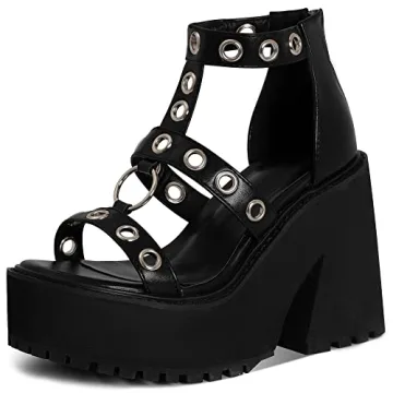 Goiphrri Women's Punk Goth Platform Sandals - Chunky Heel & Metal Rings