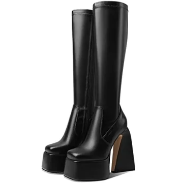 Show moreStep into the spotlight with the Goiphrri Women's Platform Knee High Boots, your ultimate fashion companion that seamlessly blends style and comfort. Crafted from high-quality vegan faux leather, these boots embody an eco-friendly ethos while providing a stunning visual appeal. With a hefty heel height of approximately 12.5cm (5.11 inches) paired with a supportive platform of 5cm (1.100 inches), these boots elongate your legs while ensuring stability and comfort as you stride confidently into any room.