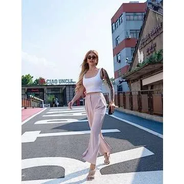 GOKATOSAU Women's Loose Fit High Elastic Waisted Wide Leg Straight Long Trousers Suit Pants Pink