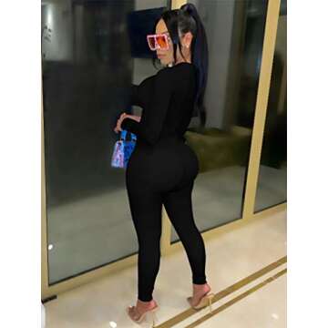 Show moreStep into the spotlight with the GOKATOSAU Women's Sexy Bodycon Outfits, an exquisite long-sleeve jumpsuit designed to turn heads and elevate your fashion game. This chic and contemporary piece merges elegance with comfort, making it the perfect outfit for club nights, parties, or casual outings. Crafted from high-quality, stretchy fabric, it hugs your curves in all the right places while allowing for easy movement. The sleek black color offers versatility, enabling you to accessorize it in a multitude of ways, whether for a daring night out or a cozy brunch with friends. With its classic bodycon silhouette, this jumpsuit highlights your figure and ensures that you stand out in any crowd.