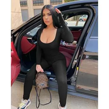 Show moreStep into style and comfort with the GOKATOSAU Women's Sexy Long Sleeve Bodycon Solid Outfits Club Rompers Jumpsuits. This exquisite black bodysuit romper is designed to flatter your figure, boasting the perfect blend of 92.5% polyester and 7.5% spandex to provide a stretchy, breathable fit. Whether you’re gearing up for a casual day out or dressing to impress for an evening event, this versatile piece has got you covered. The high waist and slim fit allow for an elegant silhouette, while the scoop neck detail adds a touch of sophistication. Its long sleeves make it suitable for various occasions and provide a stylish statement during both warm and cooler seasons.