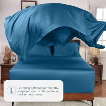GOKOTTA King Size Luxury Bed Sheets 4 Piece Set, 100% Rayon Derived from Bamboo, Softer and Cooling Than Cotton, 24" Extra Deep Pocket Fitted Sheets with Elastic Corner Straps,Blue