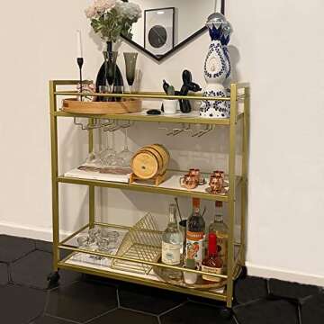 GOLASON Gold Bar Cart with 3 Shelves - Elegant Storage & Easy Mobility