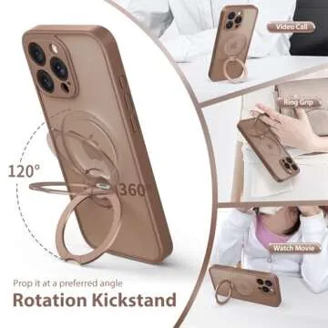 Show more Introducing the GolbinBox 360° Spin Magnetic Stand Case for iPhone 16 Pro Max, a cutting-edge protective accessory that combines durability, functionality, and style. Specifically designed for your iPhone 16 Pro Max 6.9", this case features an innovative 3-in-1 design that integrates powerful magnets, a 360° rotating kickstand, and a convenient ring holder, all while maintaining a sleek silhouette. Constructed with a robust aerospace aluminum alloy, the kickstand provides stability whether in portrait or landscape mode and can be adjusted from 0° to 120° to offer customizable viewing angles, making it perfect for streaming videos or making video calls. The case also boasts MagSafe compatibility, ensuring seamless attachment to various magnetic accessories for your convenience.