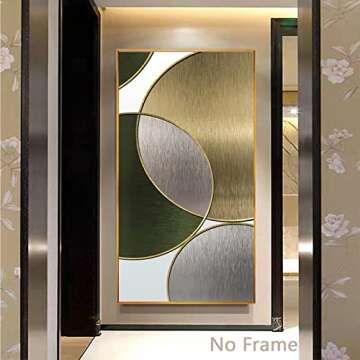 Gold Abstract Wall Art Abstract Geometric Wall Art Canvas Prints Pictures Artwork Abstract Geometric Canvas Wall Art Green and Silver Canvas Art Home Decor Living Room Picture 60x120cmx1pcs No Frame