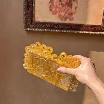 Show more Step into the world of elegance with the CUXVA Acrylic Evening Clutch, a stunning accessory that perfectly embodies sophistication and style. Made from high-quality acrylic and metal, this clutch features acrylic spheres that create a noble aesthetic, making it a must-have for every fashion-forward individual. The chic design ensures that it matches seamlessly with various clothing styles, making it an ideal gift option for ladies and teen girls.