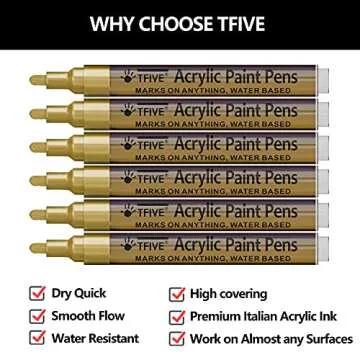 When stacked against other paint markers on the market, TFIVE's Gold Acrylic Paint Marker Pens shine in their consistent quality and user-friendly design. While many competitors may offer similar markers, none can boast the combination of vibrant color clarity, quick-drying ink, and exceptional durability. Users have praised these markers for their precise application and versatility across various mediums, setting them apart from standard paint pens, which might not deliver the same level of performance or safety standards.