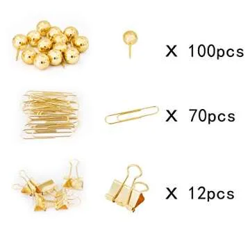 Show moreElevate your workspace with the **Gold Binder Paper Clips Set**, an exquisite collection of 182 pieces designed to bring a touch of elegance and functionality to your office supplies. This comprehensive set features not only sturdy binder clips but also stylish gold paperclips and pushpins, making it perfect for anyone looking to improve their organizational aesthetics. Crafted with quality metal, the sleek gold finish adds a sophisticated flair to your desk while ensuring that your essentials are held securely and stylishly. Say goodbye to dull office supplies and transform your workspace into a chic haven!