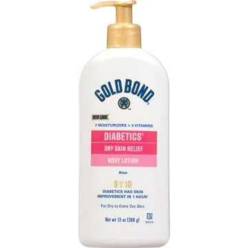 Experience the unrivaled hydration and soothing relief your skin craves with Gold Bond Diabetics' Dry Skin Relief Body Lotion. Formulated specifically for individuals dealing with dry, sensitive skin, this exceptional lotion is packed with aloe and a blend of three nourishing vitamins designed to restore moisture and improve skin texture. This powerful 13-oz. pump bottle allows for easy application, ensuring you can pamper your skin with every use without any mess.