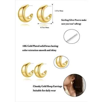 While many chunky earrings on the market can compromise comfort for style, our Gold Chunky Hoop Earrings excel in both domains. Competitors may offer similar designs but often fail to provide the hypoallergenic and lightweight features that our pair boasts. Unlike many other heavy or irritating earrings, which may lead to discomfort during extended wear, our earrings guarantee a luxurious feel without irritation—perfect for those who want to make a confident fashion statement.