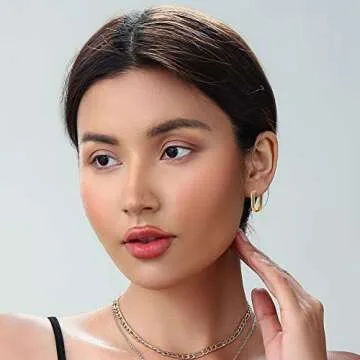 Gold Chunky Hoop Earrings Set for Women, 14K Gold Plated Twisted Huggie Hoop Earring Hypoallergenic, Thick Open Hoops Set Lightweight