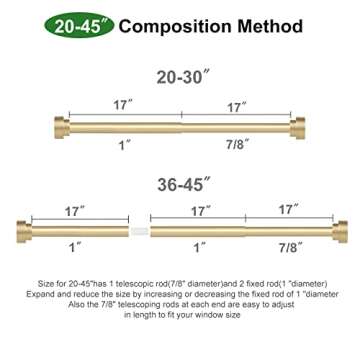 Gold Curtain Rods for Windows 28 to 48 Inch(2.3-4ft),1 Inch Diameter Adjustable Curtain Rod,Modern Drapery Rods,Decorative Window Curtains Rod 20-45",Gold