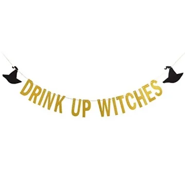 Gold Drink Up Witches Banner for Ultimate Halloween Party Decorations