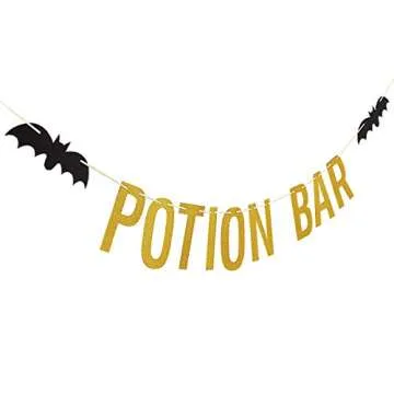 Gold Glitter Potion Bar Banner Halloween Hocus Pocus Banner, Halloween Potion Bar Decorations Potion Bar Sign Halloween Hocus Pocus Decorations