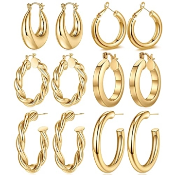 Trendy Gold Hoop Earrings Set for Women - 6 Pairs of Chunky Earrings