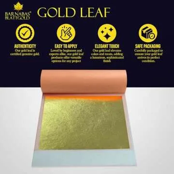 Gold Leaf by Barnabas Blattgold - 23K Genuine Gold Leaf Sheets, 10 Transfer Gold Foil Sheets 3.4 inch, Real Gold Leaf Foil Sheets, Gold Leaf Sheets for Craft, Gold Leaf Sheets for Art
