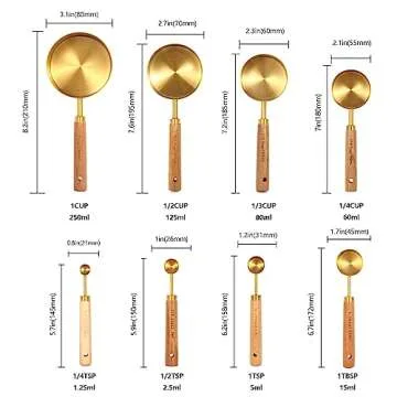 Gold Measuring Cups and Spoons Set with Fragrant Wood Handles, Premium Stainless Steel Measuring Spoons and Measuring Cups Set, For Cooking and Baking in the Kitchen (8 Piece)