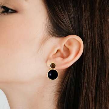 Show moreDiscover elegance and charm with our Gold Natural Tiger Eye Stone Obsidian Stud Earrings. These stunning double round earrings are a perfect blend of high-quality, natural materials featuring a captivating combination of tiger's eye stone and obsidian. Their exquisite browns and blacks create a remarkable contrast that embodies sophistication, making them the ideal accessory for autumn and winter styling. Crafted with care, these earrings offer a refined yet atmospheric aesthetic that enhances any outfit, from casual to formal, showcasing your unique personal style.