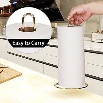 Gold Paper Towel Holder Countertop, OBODING, Kitchen Paper Towel Stand Holder for Kitchen Organization and Storage, Paper Towel Holders for Standard and Large Size Rolls (Gold)