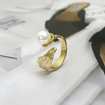 Gold Pearl Ring, Adjustable Pearl Rings for Women, Freshwater Pearl Ring, June Birthstone Rings for Women