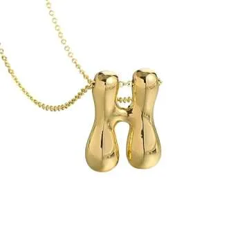 Gold Plated Chunky Balloon Bubble Initial Letter Pendant Necklace for Women - Custom Jewelry