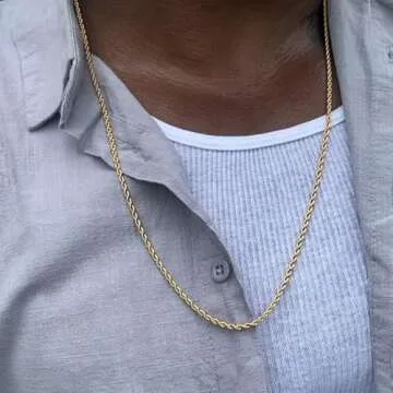 Gold Plated Necklace for Men 2.5MM 18 Inches Stainless Steel Twist Rope Chain for Women Mens