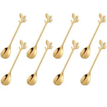 Show moreIntroducing the exquisite set of Gold Plated Stainless Steel Mini Coffee Espresso Spoons that will elevate your coffee and tea experience to a whole new level! Crafted from high-quality corrosion-resistant stainless steel, these spoons boast a brilliant mirror finish that adds a touch of elegance to any setting. The integrated molding process ensures exceptional durability, providing a premium feel that you can appreciate with every use. Featuring a charming leaf design, beautifully gold-plated, they offer a modern twist on traditional tableware, making them perfect for fancy dinner parties or casual brunches with friends.