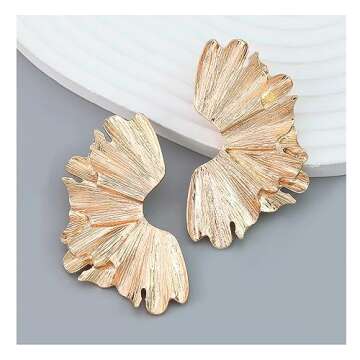 Show more Introducing the exquisite Gold Flower Earrings, a stunning piece crafted to elevate any party look. Made with a unique blend of style and elegance, these earrings feature post-back closures that secure them snugly against your ears, making them easy to wear and remove without any hassle. The irregular geometric figures add a modern twist, embodying a perfect expression of your personality. Lightweight yet eye-catching, these Ginkgo leaf earrings are designed for ultimate comfort while ensuring you shine in every event.