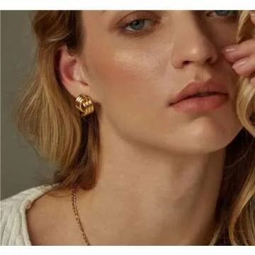 Gold Statement Geometric Dangle Drop Earrings for Women Chunky Trendy Knot Stud (Gold)