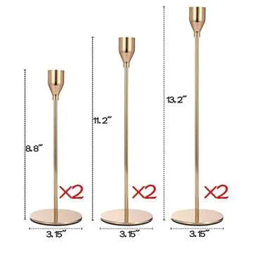 Gold Taper Candle Holder Set of 6, Brass Gold Tall Candlestick Holders, Metal Vintage Candle Stickers Long Holder Set, Pillar Decorative Candle Holder Fits 3/4 Inch Candle