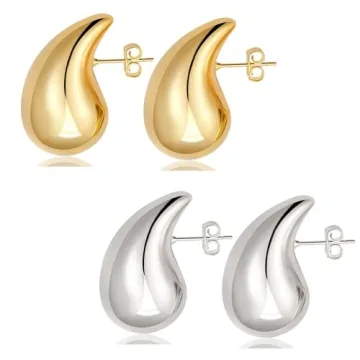 Show moreIntroducing the Stunning Gold Tear Drop Earrings, the ultimate addition to your jewelry collection that beautifully combines elegance and affordability. These chunky gold drop earrings are designed to elevate any outfit, making them an essential accessory for every woman. Expertly crafted from high-quality 925 sterling silver posts and copper with a luxurious gold plating, these earrings are not only visually appealing but also hypoallergenic and nickel and lead-free. You can confidently wear them all day without any irritation or concern for tarnishing, as they are built to withstand daily wear and tear while maintaining their radiant shine.