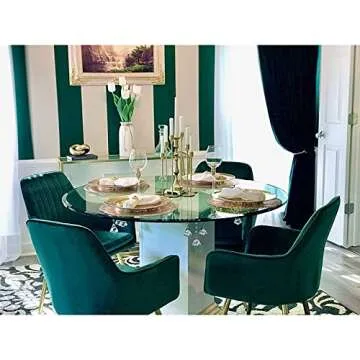 Gold Thumb Velvet Dinning Chair Set of 2 Mid-Back Accent Chair Modern Leisure Armchair with Gold Plating Legs Upholstered Living Room Chair (Royal Green-2PCS)