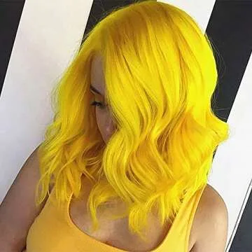 Gold Yellow 14 Inch Wave Synthetic Hair Lace Front Wigs Short Hair Wig For Women 150% Density Cosplay