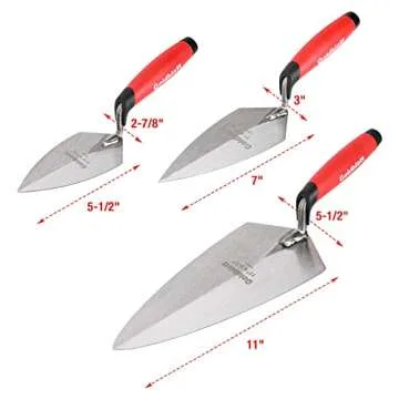 Goldblatt 6PCS Masonry Hand Tool Set - 11" x 5-1/2" Philadelphia Brick Trowel, 2PC Pointing Trowel, 5" x 2" Margin Trowel, 1/2" Tuck Pointing Trowel, 5/8” x 1/2” Convex Brick Jointer