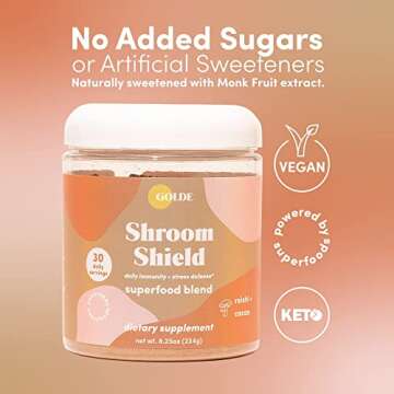 GOLDE Pure Matcha - 100% Pure Japanese Ceremonial Grade Matcha Green Tea Powder Shroom Shield - Superfood with Turkey Tail Mushroom, Reishi Mushroom Extract, Cacao and Coconut Milk Powder