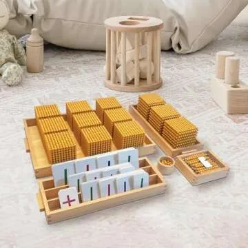 Golden Beads Montessori Toys, Math Manipulatives, Math Bank Game Toys for Preschool